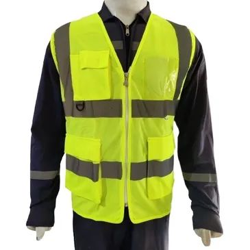 These reflective safety jackets are often worn by workers in environments where there is a risk of being struck by moving vehicles or machinery, such as construction sites, road maintenance areas, and warehouses.